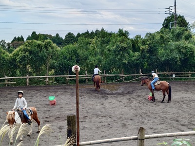 こんばんは。スーさんです。 今日は一日牧場でした。 天気は、曇ったり晴れたり。それに合わせて気温も上がったり下がったり。 午前中に二組のお客様。 自分は、午前中に馬房掃除を終わらせました。 午後も二組のお客様。 そのあとは『野あそび会』です。 ![]() 今日は、土曜日の振替メンバーと卒業生が参加してくれました。 キク、ホープ、テラの三頭。 ![]() 「玉入れ」をやりました。 テラが強かったです。一回目は常歩のみ、二回目以降は、速歩、駈歩もOK。 ![]() 最後は一頭で練習。 歩様も常歩、速歩、駈歩を入れています。 なかなかうまくいかなかったです。 ![]() 最後に玄にいから、乗っている人の目線が大切であることの説明がありました。 決めた進路からずれたらすぐに直すことが大切とのことでした。 来週の土曜日、27日に振替がたまっているメンバーが多いようなので、臨時の『野あそび会』が行われます。時間は、いつもの土曜日と同じで、15時から17時までです。 今夜は、久しぶりに一日牧場だったので、早めに休みます。