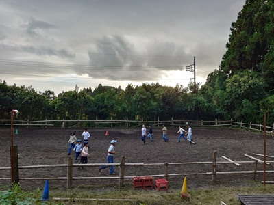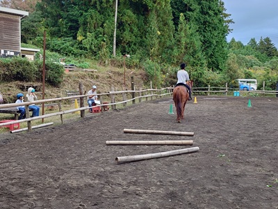 こんばんは。スーさんです。 10月も半分が過ぎました。 最近は天気が悪い日が続いていましたね。昨日は久しぶりに晴れの天気でしたが。 今日も天気は曇り。 幸い雨は降らなくてよかったです。 そして『野あそび会』は、ジムカーナをやりました。 ![]() 馬装まで終わって、馬場で玄にいから、コースの説明を受け、ひとまず走って確認します。 日曜日のメンバーが振替で参加してくれて今日も賑やかでした。 馬は、4頭。ラッキー、テラ、キク、ホープです。 ![]() ラッキーは、小回りが利くので、結構有利かもしれませんが、走ってしまうので、乗り手が慌てないようにしないといけません。 一本目の竹を跨いだところからスタート。 ![]() 巻乗りやスラロームなどの障害をクリアして最後、三本の竹を跨ぎ終えてゴールです。 もちろんタイムレース。早い人が勝ちです。そして、コースを間違えたり、飛ばしてしまうと、戻ってやり直しになります。 やり直しをしたメンバーはいましたか、みんなコースは覚えられていました。 ![]() 最後に結果発表です。 今回の最速は、ラッキーで37秒78でした。 いいタイムが出たと思います。本番が楽しみです。 明日は、法事があるので、顔が出せたら、牧場に行きたいと思っています。 自分もジムカーナはやりたいなぁ。 |