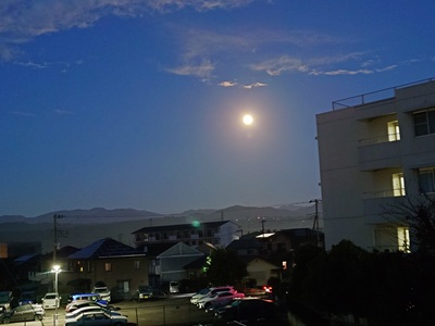 こんばんは。スーさんです。 今日は暖かい一日でした。 天気もよかったですね。 昨夜は、雨が降っていて、満月を見ることができませんでしたが…。 けさ、5時30分の西の空には…。 ![]() 日付は変わっていましたが、満月を見ることができました。 ひときわ、明るかったです。 ![]() 日が昇って富士山を見ると、昨夜は富士山雪が降ったようで、下の方まで白くなっていました。 最近は、晴れたりして雪が解け始めていましたが、冬の富士山に近くなりました。 ![]() 紅葉も進んでいますね。 秋だなぁ…。と思いながら、仕事から帰っています。 ![]() 今夜は、月が見えました。思っていたよりやや北側に出ていました。 明日は「立冬」です。 やや暖かく、晴れの一日になりそうです。 あと一日頑張って週末を迎えたいですね。