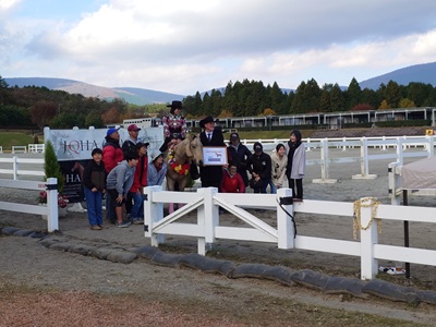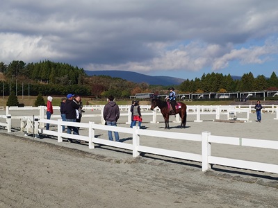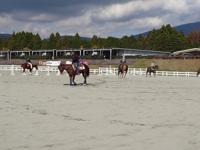 こんばんは。スーさんです。 今日も天気がよくて、過ごしやすかったですね。 本日は、御殿場で行われている「JQHA CLASSIC 2025」を見てきました。 ホースマンシップを見たかったんですが…。着いたときに結果発表が放送されていたので、終わったところでした。残念。 そのあとのレイニングを見ました。 ![]() 今年は、屋外馬場で行われています。 ここで、入賞した人馬が写真を撮るようです。 ![]() 富士宮市からは、富士山が見えていましたが、御殿場市からは雲に隠れてみることができませんでした。雲がなければ、右側に富士山が見えます。 ここから見る富士山は、宝永山の加工が見えて、普段見ている富士山とは違う姿。富士宮でも朝霧から見るのと街中から見る富士山では姿が違いますね。 ![]() 西側の駐車場から見た待機馬場。奥が厩舎ですね。 ![]() レイニングの競技前なので、駈歩やスピンなど調整していました。 普段見ることがないので、見ているだけで新鮮です。 話しによると、ここにいる馬はほぼ外国産馬で、一頭600万円くらいするそうです。 ![]() 各牧場がチーム一丸となって、乗り手と馬をサポート。 ブラッシングしたり、虫よけしたり、乗り手に水分補給したり。 ![]() 写真は、わかりずらいかもしれませんが「スライディングストップ」の場面。 駈歩から急停止です。乗り手は体を後ろに反らします。『野あそび会』のメンバーは馬を停める時に前かがみになりがちですが、鞍にしっかり座って停めていますね。 ![]() 入賞したチームの写真撮影。黒いスーツを着ているのがジャッジの方です。 ![]() 今回は、「ヨナグニウマ」を支援しているブースが出店していました。 今年の『野あそび大運動会』での「ポニークルー賞」もここで調達しました。お楽しみに。 ![]() 昼食は、久し振りにラーメン。 このお店、結構混んでいます。 ![]() 今回も登山道から行ったので、途中市内を見下ろせる場所で一枚。 紅葉していました。 ![]() 富士山は富士宮からは見えますが、御殿場方面は写真右側になりますね。雲が見えているので曇っているかな。 曇ると寒かったです。御殿場。 今年の競技会も終わりですね。 今回は残念ながら、競技会に参加できませんでしたが、また参加してみたいです。 競技会関係者の方とお話ししていて、『課題を見つけるために競技会があるので、上手くなってから参加するのではないんですよ。』と聞きました。課題を見つけてそれを克服していくために競技会があるとのことです。奥が深いです。 しばらく天気はいい日が続きそうです。気温は低い日もあるようなので、暖かくして過ごしましょう。 来年は6月の初旬に「八ヶ岳ホースショー」が。おそらく11月に「JQHA CLASSIC」の競技会が行われる予定だそうです。