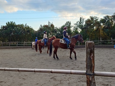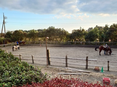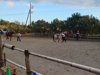 こんばんは。スーさんです。 今日から今年最後の三連休がスタートしました。 年末には、冬休みがありますが…。 本日も天気はよく、暖かい一日でした。朝と夕方以降は寒くなりますが。 馬たちもまだ馬着は来ていなく、玄にいもいつから着せるか迷っているようです。 ひと昔は、この時期は馬着は着ていたと思いますが…。 今日は午後から牧場へ。 「Wacca!」のセラピー乗馬会です。今回は二人の参加と言うことで、キクの馬房掃除を。 テラに乗って馬上体操。 そのあとは調馬索で速歩を長めに乗りました。 ![]() いつもと違うことができて新鮮だったように思えます。 調馬索、初めてだったと思います。 そして『野あそび会』です。 11月はイベントが重なったり、土・日の『野あそび会』はイレギュラーな開催になっています。 ![]() 今日は8人参加で、馬はキク、ラッキー、ホープです。 「だるまさんが転んだ」をやりました。 ![]() まずは「引き馬」からスタート。 歩様は、駈歩までOKです。 キクはなかなか難しそうです。 一方で、ラッキーとホープは強かった。 次は、騎乗してやりました。 ![]() 騎乗の場合は、駈歩はNGになります。ラッキーやチャンプと速い馬は、すぐにゴールしてしまうからです。 最後に自分もホープで挑戦させてもらいました。今日のホープは少し落ち着きがなかったです。 隅角をちょっと嫌がっていました。 ![]() 玄にいからは、乗っているときの視線についてのお話しと停まるときの姿勢や合図についてのお話しがありました。 来週も金・土・日と『野あそび会』があります。終わるころは寒くなりますので、暖かい服装で参加してほしいと思います。