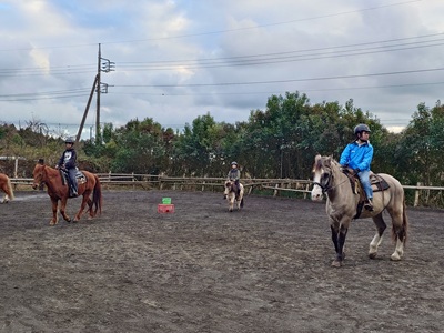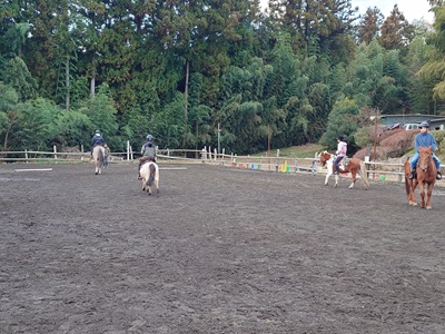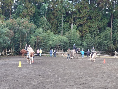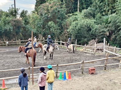 こんばんは。スーさんです。 今日から「冬休み」に入りました。 午前はお墓参りなどした過ごし、午後から牧場へ。 今朝は寒かったですね…。昼間も寒かったので一日を通して寒かったです。 今シーズン一番の寒さだったと思います。 最高気温も一桁だと思います。 今日は『野あそび会』が行われました。 先週の土曜日が雨だったので、振替です。 本日は『野あそび会』の卒業生が遊びに来てくれました。 自分が言った時には、馬房掃除をしてくれていました。 ![]() 今日は、キク、グラシオ、テラ、ラッキーで。 まずは、「玉入れ」からやりました。 ![]() ラッキーが活躍しました。 卒業生の二人も参加。 ![]() 次に「スラロームリレー」です。 こちらでもラッキーが速かった、駈歩で走破。 今日のラッキーはよく走りました。 ![]() 最後は「だるまさんが転んだ」です。 ここは、キク、グラシオが強かった。 ラッキーは、なかなか停まることができなかったり、駈歩になってしまったりでスタート地点に何度か戻り再スタート。 明日が本番です。 ![]() 最後に明日の確認をして解散になりました。 今日は少し早めに終わりました。 明日は『野あそび大運動会』です。 先週の週間天気予報では心配でしたが、今日の天気予報では晴れ。 気温もちょっと上がるようですが、この時期らしい気温になると思うので、朝は寒いと思います。 集合時間は8時30分です。 翌29日は「もちつき大会」です。土曜日のメンバーがみんな参加予定。 土曜日のメンバーとは、今日、明日、明後日と顔を会わせますね。 寒いので、乗馬でケガをしないように気をつけてほしいと思います。