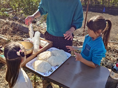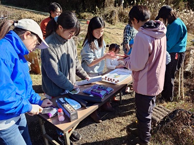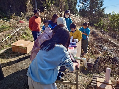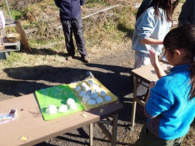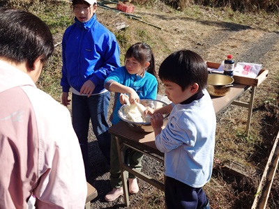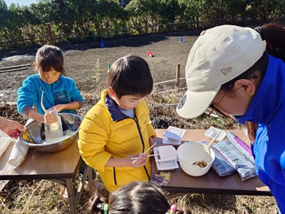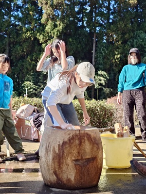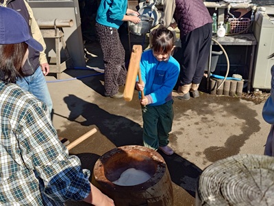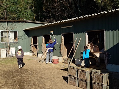 こんばんは。スーさんです。 2026年も始まって二週間が経つます。 新年を迎えて、あっという間に二週間。 今日は、12月29日に行われた「もちつき大会」の様子をお知らせします。 今回は二回に分けてレポートします。 『野あそび大運動会』が終わった翌日。 年末恒例の「もちつき大会」が行われました。 今回は、土曜日のメンバーと水曜日のメンバー二人か参加。例年にない大勢の参加になりました。 集合は9時。 まずは、馬房掃除からスタートです。 ![]() 年末のため、ご父兄の方も、クモの巣をはらってくれました。 ![]() 馬房掃除が終わると、もちつきの準備が始まります。 ![]() 使用する食材を切ったり、大根をおろしたり。 ![]() 納豆をかき混ぜています。 『野あそび会』の先輩が面倒を見てくれます。 ![]() 交替しながら、大根をおろしたり、納豆をかき混ぜたり。 みんなでやると楽しいですね。 ![]() こちらは、あんこを丸めています。 初めて参加するメンバーが多かったかな。 ![]() ほぼ準備が終わると、いよいよもちつきがスタートします。 ![]() 11時過ぎくらいから、もちつきが始まりました。 ![]() 『野あそび会』メンバーも餅を搗きます。 結構様になっていますね。 ![]() つきたての餅で、あんころ餅を作りました。 なかなか体験する機会はなくなってきているのかな。と思います。 上手にできるかな。 ![]() みんな上手に作りました。 見事です。 ![]() 今回は、返しもチャレンジ。 熱いので水をつけますが、つけすぎると、臼の中が水浸しになってしまいます。 ![]() ちょっと水浸しになってしまいましたが、二臼目も終了。 こちらは、ちぎって納豆や大根おろし、黄な粉につけて食べます。 ![]() お昼になって、馬たちにお昼ご飯をあげて、自分たちもつきたてのお餅を食べます。 つきたてなので、やわらかくておいしいです。 牧場でジュースも用意してくれました。 日差しがあってポカポカ陽気です。 のどに餅を詰まらせないように気をつけないとですね。 今回はここまでです。 朝からお昼までの様子をお知らせしました。 今週もあと一日。学校によっては土曜日に授業があるところもあるようですが、頑張っていきましょう。