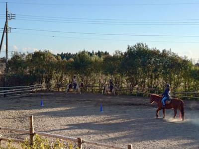 こんばんは。スーさんです。 今日も天気はよく、寒い一日でした。 お昼過ぎてからは、風も吹き始めたので、一層寒くなりました。 本日は午後から牧場へ。 「富士山子どもBASE」と「Wacca!」の合同セラピー乗馬会です。 馬房掃除をして、乗馬と流れは同じです。 ゲームは「玉入れ」をやりました。ただ、風が強かったので、カゴから玉を取って運ぶ内容になりました。牧柵に置くと、風で落ちてしまう可能性がありました。 馬房掃除中、ラッキーは日向にあたって、お昼寝モードに突入しつつ…。 ![]() 玉入れは、上手でした。ラッキー組は、パーフェクトで終えたメンバーが多かったです。 そして『野あそび会』です。 日曜日のメンバーが振替で参加してくれました。 来月の検定に向けて、基本最後の練習になります。 ![]() まずは、初級のメンバーの練習。 部班運動でスラロームや速歩、駈歩、巻乗りなど。軽速歩の手前が合っているかもチェック項目に入っています。 ![]() 初級メンバーの練習が終わると中級メンバーの練習になります。 今日は、グラシオもいました。 ![]() パターンの練習です。 一頭ずつ、一人二回走行しました。 常歩から速歩へ。速歩での巻乗り、速歩から常歩。停止と走行パターンを覚えないといけません。テラはちょっと苦戦している一方、ラッキーはいい感じで走行できていました。 ![]() 次回は二月になるので、検定月に入ります。日曜日は明日が最後の練習になりますね。 でも、来週の土曜日に、振替の『野あそび会』があるので、そこが最後になります。 明日は「フームステイ」が入っているので、午前から牧場へ行く予定です。 まだまだ寒いです。暖かくしていこうと思います。