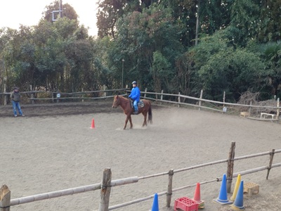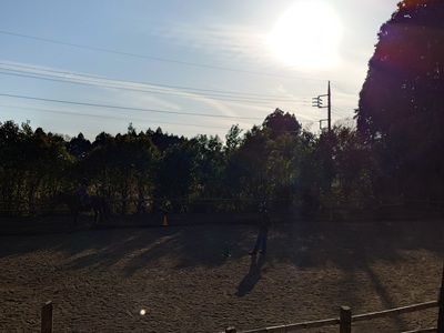 こんばんは。スーさんです。 今日で1月も終わりですね。 天気もよく、日差しがある昼間はちょっと暖かかかったかな。 夕方は寒く、牧場から帰るときは、4℃でした。 本日は、検定前最後の『野あそび会』がありました。 水・土曜日のメンバー7人が集まって、検定の練習です。 ![]() 逆光になってしまい見えづらいですが、キク、ラッキー、チャンプで「レールワーク」の練習からスタートです。 追い越しのタイミングが、なかなか難しいです。 ![]() 次に、中級Cのパターン練習。今回、土・日のメンバーは中級Cを受けるのが多いです。 歩様は速歩までですが、停止、巻乗り(速歩)があります。 ![]() そして、水曜日のメンバーは中級Bのパターン練習。 こちらは、停止、バック、ピボットターン、駈歩のリードチェンジも含まれています。 難易度が上がります。 ![]() 他にも中級Cは、馬体の名称を答える内容もありますし、中級Bは、鞍の各名称を答える内容も含まれています。 玄にいからは、「レールワーク」の追い越しについて、話しがありました。 競技会に出場経験のあるメンバーが少ないので、乗り手が、どこへ馬を連れていくか、追い越しのタイミングの判断をしっかりとするようにとのことでした。 パターン走行は、大体できているように見えましたので、本番頑張って欲しいと思います。 明日から2月です。早速明日の『野あそび会』から検定に入ります。