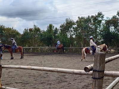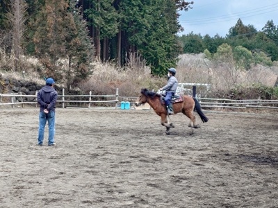 こんばんは。スーさんです。 今日から3月がスタート。 午前中は天気もよかったですが、午後になってから雲が少しずつ出てきました。 昼間は暖かかったですが、夕方は少し肌寒くなりましたね。 お昼ごろは、風も少しありました。 相変わらず、花粉の飛散は多いですね…。 今日はお昼休み前から牧場へ。 午後一番は、ラッキーの馬房掃除を。 その間ラッキーは、調馬索。「ファームステイ」のメンバーが練習していました。 ![]() 午前中はホープの調馬索をやったそうです。 前回よりうまくできたようです。 ![]() 毎週日曜日にレッスンに来られるお客様。 今日は、リオに乗ってレッスン。 蹄跡運動の後は、サークルを駈歩でやっていました。 そして「ファームステイ」のメンバーの乗馬タイム。 ![]() まずは、蹄跡運動を。三種の歩様です。 そして、サークル。 ![]() 右回りで速歩一周、駈歩二周。 手前を替えて、左回りで速歩一周、駈歩二周をやりました。 自分もちょっと同じ内容をホープでやらせてもらえました。自分自身サークルは、あまり得意ではないのですが、今日はうまくいけました。 15時からは『野あそび会』です。 今日は、全員揃いました。 ![]() 馬も一人一頭で、ラッキー、テラ、チャンプ、ホープで。 まずは蹄跡運動。 歩様は、常歩、速歩、駈歩の三種の歩様。 そして、サークルをやりました。 二週駈歩を右左の手前でやりました。 ![]() 二回目までは、コーンが置かれていましたが。 ![]() 三回目以降は、コーンなしでやりました。 案外コーンなしだと、うまくいけなかったですね。 発表会当日は、コーンがないかもしれません。 ![]() 発表会では、まだ確定はしていませんが、昨日やった竹の間を通ったり、竹の枠の中で止まったりするパターンと、今日やったサークルを披露するパターンと簡単なホースマンシップのパターンの三つのうち一つを自分で選んでやるようです。 明日は、高校の卒業式があるようですね。