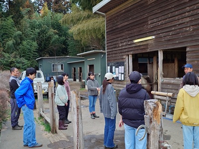 こんばんは。スーさんです。 3月も最初の週末がやってきました。 昨夜は雷雨になったみたいですね。寝ているときは気が付かなかった…。 朝には天気も回復し、昼間はポカポカ陽気。 夕方は寒くなりました。 今日は午後から牧場へ。 キクは、馬房の中でまったり。 ![]() 何見ているの。と言いたそうな表情。 御寛ぎ中、失礼しました。 午後一番は「富士山子どもBASE」のセラピー乗馬会からスタート。 各セラピー乗馬会も、2025年度最後を迎えています。 ホープ、リオ、ラッキーの馬房掃除をして、乗馬です。 今回は、テラとラッキーに乗りました。 ゲームは、『野あそび会』でもやっている、竹で作った障害を通ったり、枠内で停まったり、する内容です。コーンの巻乗りも加わりました。自分で手綱を持って乗りました。 ![]() 思ったように行けたかな。 ホースセラピーのあとは『野あそび会』です。 発表会の練習です。 ![]() ラッキーの調馬索からスタート。 そのあとは、サークルの練習をやりました。 ![]() まずは、ラッキーとホープから練習スタート。 1回目は、常歩で、二回目は、速歩か駈歩でやります。 二周回ったら、S字方向転換をして、手前を替えます。 ![]() ラッキーとホープが終わると、待機していた、キク、テラ、チャンプが練習に入ります。 ![]() チャンプは駈歩でサークルをやっていました。 ラッキーとチャンプは、駈歩でサークル行けそうです。 ![]() 最後に、勢いについての話しがありました。 サークルをうまく回るには、勢いがあっ方がいいとのこと。 勢いがないと、サークルが小さくなってしまいます。今回は、コーンを置いていたので、コーンの外側を回るように指示がありました。が、コーンの内側に入ってしまったメンバーもいました。 勢いは大事ですね。また乗っている人の視線や姿勢も大事です。 来週は、ホースマンシップのパターンをやる予定です。 2025年度の『野あそび会』も金、土曜日は来週が最後。発表会も二週間切りましたね。 明日は、E/Bで、キクとグラシオが午前にYMCAにイベント出張。 「ファームステイ」に参加するメンバーもいるので、午前から牧場へ行きます。 今日よりも寒くなりそうなので、暖かくしないといけないですね。