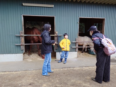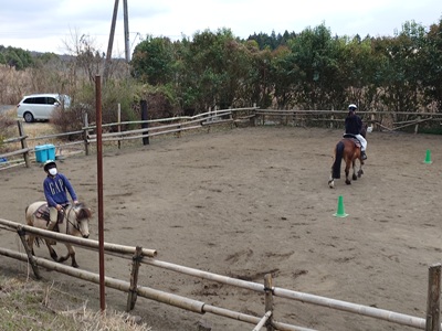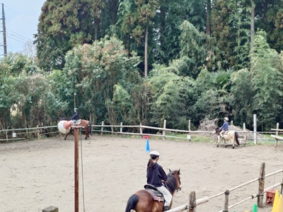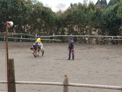 こんばんは。スーさんです。 今日は、午前は晴れ間もあり、暖かかったですが、午後になってからは雲が出始めて曇り空に。 日差しがある時間はポカポカ陽気ですが、曇ると気温も下がり始めます。 午前は、春の彼岸入り直前ということでお墓参りに行ってきました。 牧場は午後から。 ホープ、ラッキー、リオの馬房掃除からスタート。 そのあと、ポニークルーミーティングがありました。 3月下旬は忙しいようです。春休みにも入りますし…。 そして『野あそび会』です。 エサづくりを終えて、みんなが馬場を注目していました。 ![]() その先にいたのは…。 ![]() 久しぶりに馬場に放牧されているホープ。 駈歩からの停止など、元気よく走っていました。 ![]() 日曜日も今日が年度内最後になります。土曜日メンバーが振替で参加。 まずは調馬索から、発表会の練習がスタート。 ![]() 次は、ホースマンシップのパターン練習。 ラッキー、チャンプ、ホープです。 ![]() まずは、蹄跡運動から始まり、人馬ともに緊張をほぐします。 ![]() そのあと、練習開始。まずはホープですね。 先週とは逆からスタートです。 日が当たっているところがない…。 ![]() ラッキーとチャンプも練習をします。 昨日は、この時間日が当たっていたけれど…。寒くなりました。 ![]() 最後にサークルの練習。 左回りを二周駈歩。そして、手前を替え右周りを二周駈歩します。 ラッキーとチャンプもやりました。 ![]() 最後、全員が揃えてよかった。日曜日は人数が減ってしまったので、今年度は一人や二人の時が多かったです。 ![]() 他の曜日のメンバーと話す機会がなかなかないので、交流を深める場面も。 夢に向かってのアドバイスを受けていました。 水曜日が、年度内最後の『野あそび会』になります。 20日が発表会本番。お休みのメンバーもいるようですが、楽しんで本番を迎えてほしいです。 冬の寒さが戻ってきた感じがするので、体調を崩さないようにしないと…。