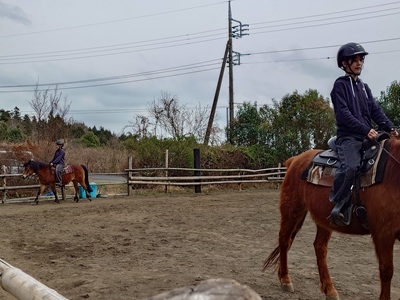 こんばんは。スーさんです。 今日は午後から牧場へ。 「ファームステイ」に二人『野あそび会』の卒業生が参加してくれました。 馬房掃除とエサづくりをして、乗馬。 ![]() キクとチャンプに乗りました。 まずは、軽く部班運動から。 二人とも久しぶりの乗馬になります。 ![]() 追い越しのタイミングもばっちり。 駈歩までやりました。 次にホースマンシップをやりました。 停止、速歩、ピボットターン、駈歩、バックなど組み込まれています。 ![]() 過去競技会に出たことのあるメンバー。 玄にいのパターン説明も一発で覚えて、普通に走行してしまいます。 ![]() 四月からは、二人とも、大学・高校へ進学します。 牧場に顔を出す機会も減ってしまいそうですが、これからもぜひ、馬に乗りに来てほしいと思います。 来週は天気が悪い日が多いようです。牧場のイベントが春休みで入っているけれど…。 そして2025年度も約一週間で終わり。 そういえば、発表会があった日に、静岡県も「桜の開花」の発表があったんですね。 昨年・平年よりも早い開花になっています。やはり、最近は暖かいのかな。