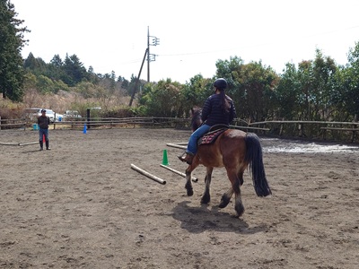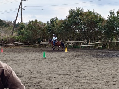 こんばんは。スーさんです。 今週も週末がやってきました。3月最後の週末です。 先週は、発表会当日でしたね。早一週間が経ちました。 では、昨日の続き。発表会の様子をレポートします。 調馬索が終わり、次は△☐=です。 竹を△、☐、=の形に置き、枠の中で停まったり、通過します。 ![]() 一番手は、水曜日メンバー。チャンプでやります。 普段は、グラシオに乗っているようですが、発表会当日は、引き馬のイベントで不在のため、急遽チャンプに乗りました。 ![]() 二番手は、土曜日メンバーです。キクに乗って挑戦。 速歩がうまく出たかな? ![]() 三番手は、水曜日メンバーでチャンプ。普段もチャンプに乗っています。 チャンプは、竹の枠の中で停まることが苦手なので、通過します。 ![]() 四番手は、水曜日メンバーで、キクです。 普段もキクに乗っています。キクは、チャンプと違い、枠内でしっかりと停まってくれます。 ![]() 五番手は、土曜日メンバーでチャンプ。 年が明けてから、チャンプに乗っています。 ![]() 六番手は、土曜日メンバーでテラです。 今回、テラの騎乗は一人だけでした。 ![]() 七番手は、日曜日メンバーでチャンプ。 今までは、チャンプに乗るメンバーが少なかったですが、今回の発表会では四人騎乗と一番多かったです。 ![]() 八番手、最後は日曜日メンバーでホープです。 ホープも、一人の騎乗。 △☐=も終わり、次は三番目の発表の「ホースマンシップ」です。 ![]() 五個のコーンごとに、パターンが決まっています。競技会にもあります。 停止から始まり、常歩、ピボットターン、駈歩、速歩、停止、バックなどをやります。 写真は、日曜日メンバーとホープです。多いメンバーは、最多三個披露します。 ホープのほかに、キク、テラ、ラッキーもやりました。 最後は、サークルです。 輪乗りです。 ![]() チャンプからスタート。左回り、右回りを二周ずつ駈歩します。 ![]() ラッキーもサークルやっています。 土曜日メンバーです。 ![]() チャンプは、気持ちいいように駈歩してくれます。 スピードは、ちょっと速く感じるかも。 ![]() テラは、なかなか駈歩を出すのが難しいですね。 蹄跡なら、走るんですが…。 ![]() チャンプ、一番出番が多い。このあと、一回あります。 乗り手は土曜日メンバー。金曜日も来て乗っているようです。 ![]() ホープもサークルをやりました。 レーニングのサークルは大きいサークルの時はスビートも速く、小さいサークルの時は遅くします。 ![]() 発表会最後は、チャンプでした。手前を替える時は、一旦速足に落としてから、S字変換して、駈歩します。 チャンプお疲れさま。今までは、キクが一番出番が多かったかなと思いますが。 このあとは、手入れ、馬にお昼ご飯をあげてから、閉会式に。 まずは、2月に行われた「乗馬検定」の成績表が一人一人に配られました。 ![]() 玄にいから、コメントもあります。 もらう時はドキドキしますね。合格しているのか…。 ![]() みんな、成績表をもらい終わると、発表会も終了です。 ![]() 最後にココアを飲んで、2025年度『野あそび会』も終了です。 2026年度の『野あそび会』は、4月8日水曜日から各曜日順次スタートします。 ![]() 夜は、土曜日メンバーと一緒に「打ち上げ」しました。 星と月が見えました。お店に向かっているときです。 ![]() この日は、静岡県で「桜の開花」の発表がありました。 勤務している工場の桜の木も咲き始めています。夜桜もいいですね。 簡単ではありましたが、発表会の様子をレポートしました。 2025年度の牧場のイベントも少しで終わり。明日は、午後から牧場へ行く予定です。