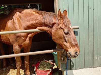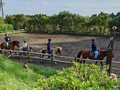 こんばんは。スーさんです。 4月も最後の週末を迎えました。 天気は、雲が多めの天気でした。気温も少し低く、寒く感じました。 日差しがあるとポカポカ陽気に。 ![]() リオも、顔を出して眠たそうでした。 そして『野あそび会』です。 今日は、キク、テラ、ラッキー、ホープの四頭出し。 ホープは『野あそび会』メンバーの中級クラスのメンバーが二人、初めての騎乗でした。 自分も久しぶりに、キクに乗れてもらえることができました。 まずは部班運動から。 キク、テラ、ラッキー、ホープの順番で。 ![]() 今日は、テラ、ホープも調子が良さそうでした。 後半は、パターン走行。 ![]() コーンの左側からスタートする場合とコーンの右側からスタートと二回ずつやりました。 スラロームは速歩、戻りの直線は駈歩で戻ります。 ![]() 最後に玄にいから、スラロームの乗り方について、話しがありました。 来週土曜日は『野あそび会』はない予定ですが、急遽振替で『野あそび会』を開催することが決まりました。 明日は午後からエヘガザルですね。