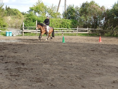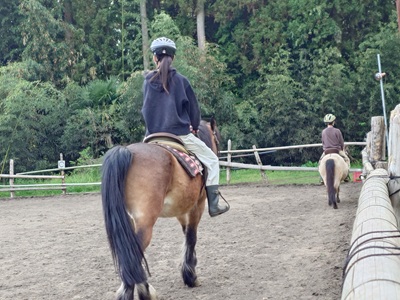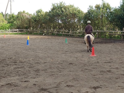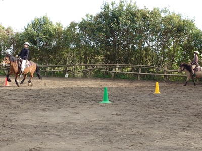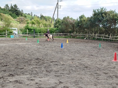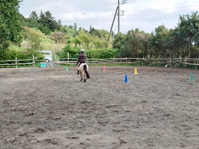 こんばんは。スーさんです。 来週は5月に入っていますね。 今日は、午後から牧場へ。午前は、少し体調が悪くお休み。 ![]() チャンプ、無口が変わりました。 みなみがつけていた無口です。 ![]() 今日の『野あそび会』は、チャンプとラッキー。 ポカポカ陽気で少し眠そうな二頭。 ![]() 約一カ月振りの騎乗になる二人。 まずは「レイルワーク」からスタート。 ![]() 三種の歩様をやりました。 チャンプは速いので、追い抜きをしないといけないですが。まずまずよかったと思います。 ![]() 写真は駈歩の様子です。 ![]() 上手く乗れていました。 ![]() 最後は、スラロームのパターン走行。 行きは速歩でスラロームをして、戻ってくるときは駈歩で。 ![]() 三回目からは、行きは直線を駈歩で、帰りは速歩でスラロームをしてくるパターン走行をやりました。 こちらの方が難易度は高いのこと。 ![]() スラロームも駈歩になってしました。 なかなか難しい。 ![]() 最後に、玄にいからお話しがありました。 練習で乗っているときは、声掛けをしてあげれるようにとのこと。 声の強弱などうまく利用するようにとのことです。 ![]() そして、長鞭で駈歩の時の馬の姿勢について、説明がありました。 なぜ外側の足を下げて合図をかけるのか。少し難しい内容になってしまったけれど、理解できていたようです。 次回にうまくいかせれるようにしたいですね。